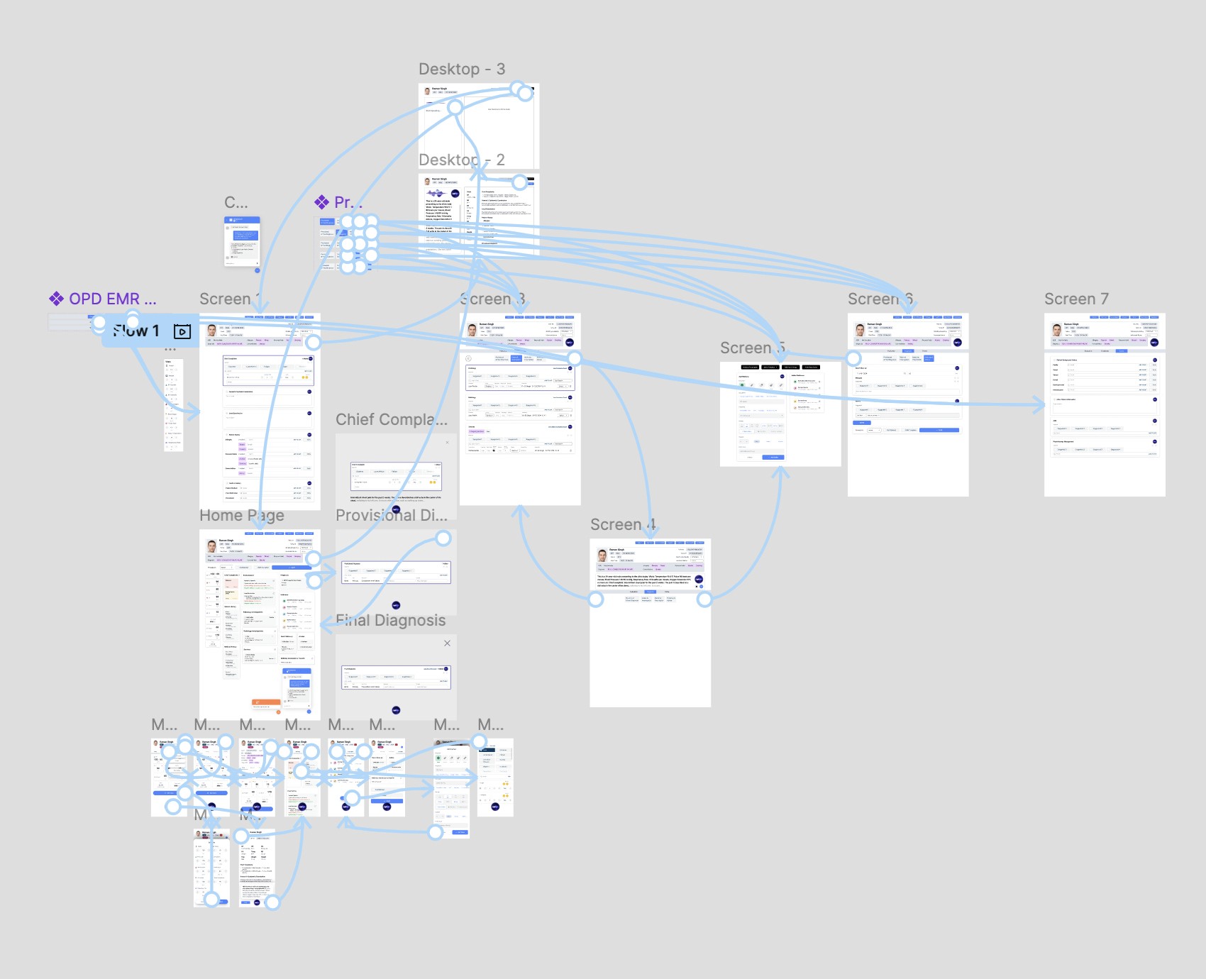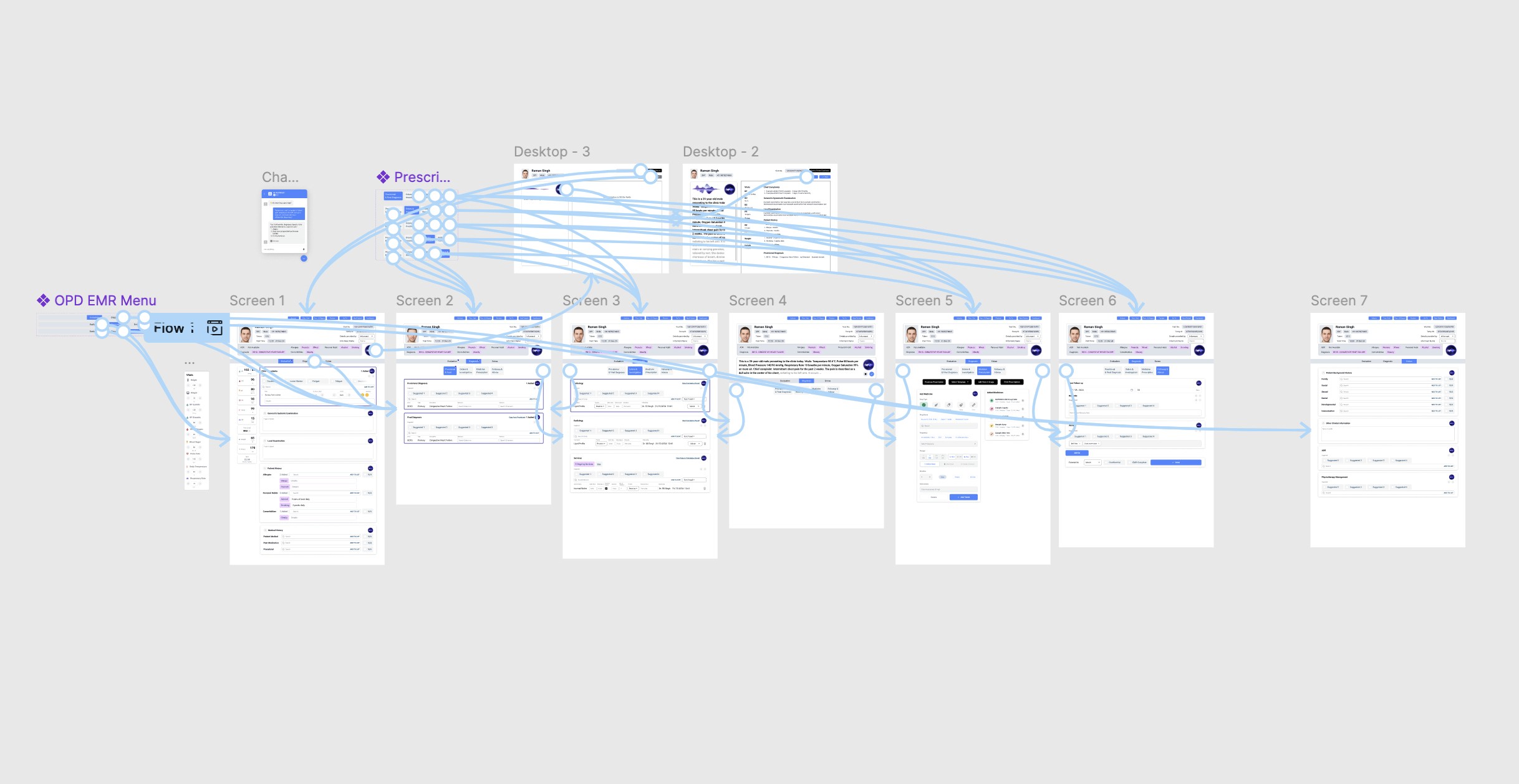 The design evolved through four major wireframe iterations, each informed by feedback from senior doctors and the technical team.