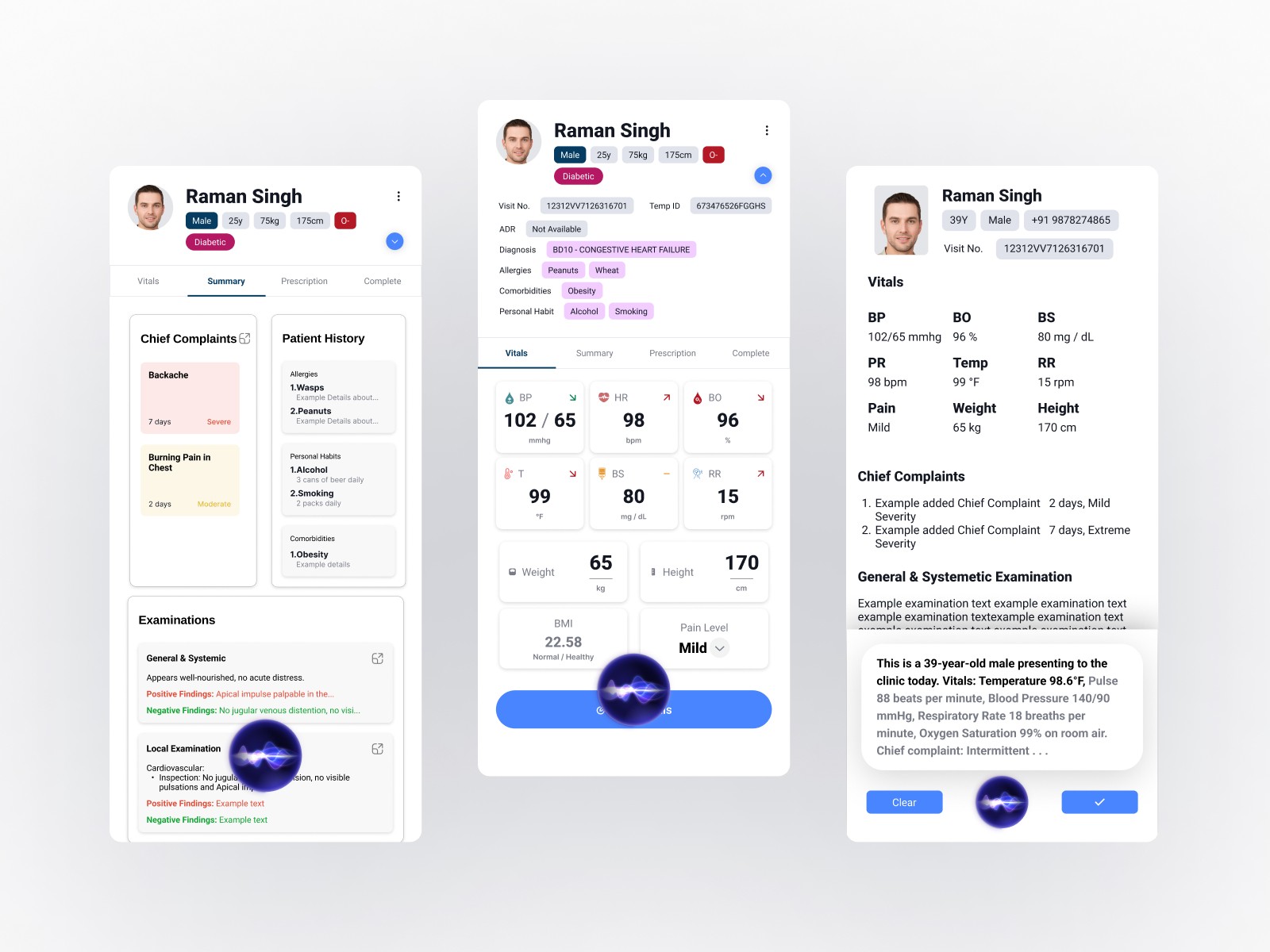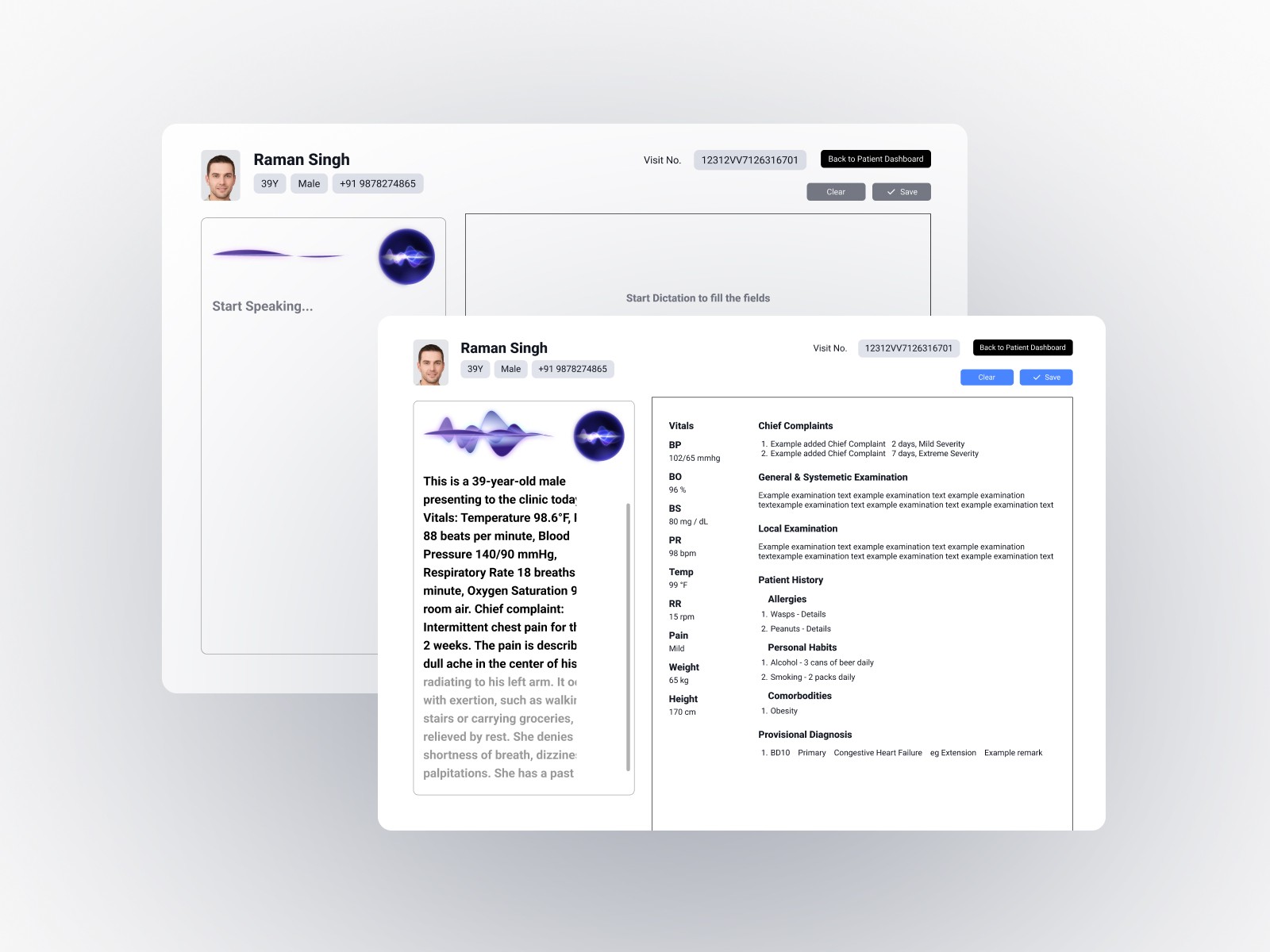 Though it might look very manual-input centric here, it's worth noting that it still is aimed to be used using the Voice control but it was also a requirement by the doctors team to let the doctor edit any and all details filled with full efficiency and ease.